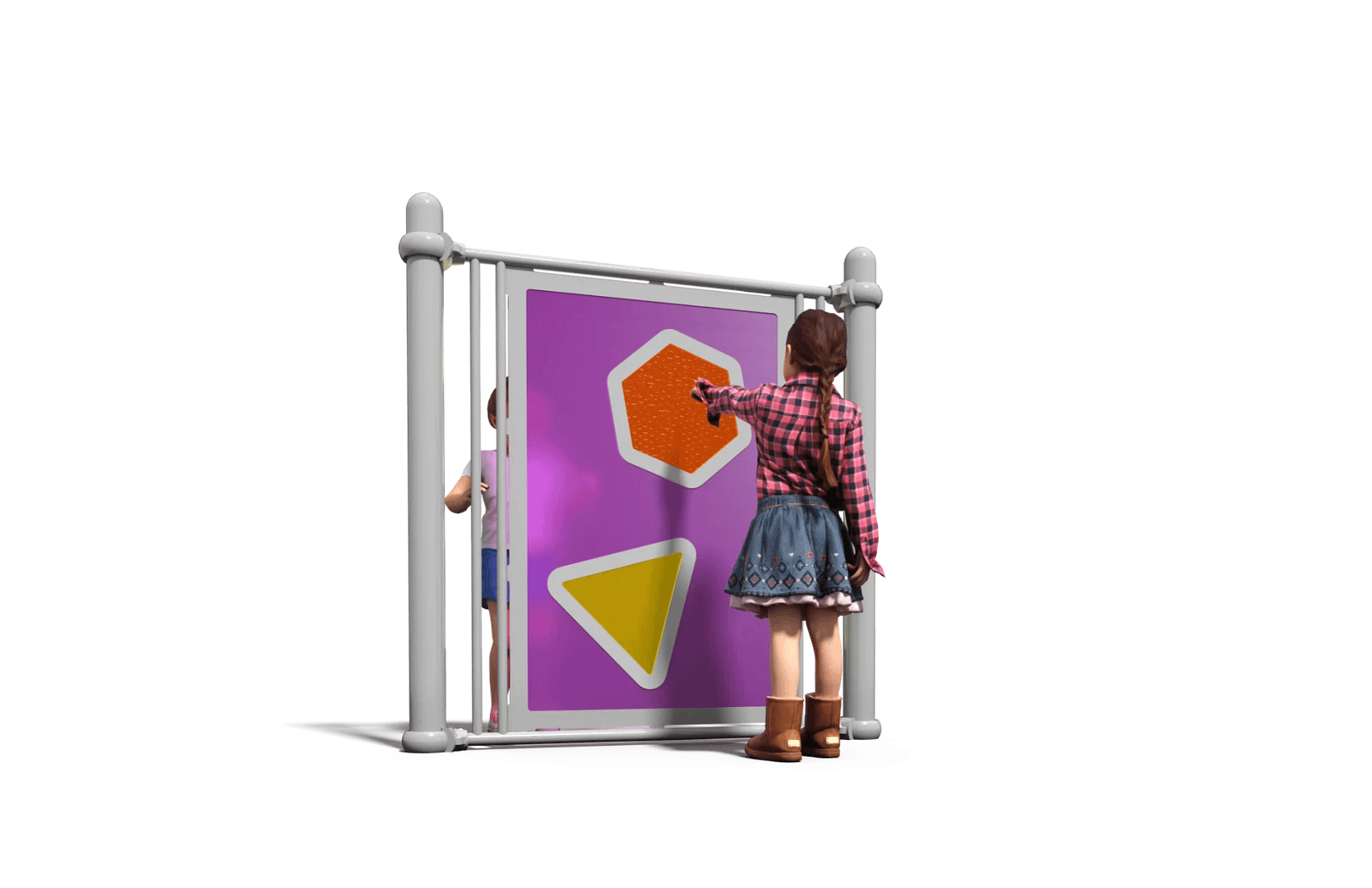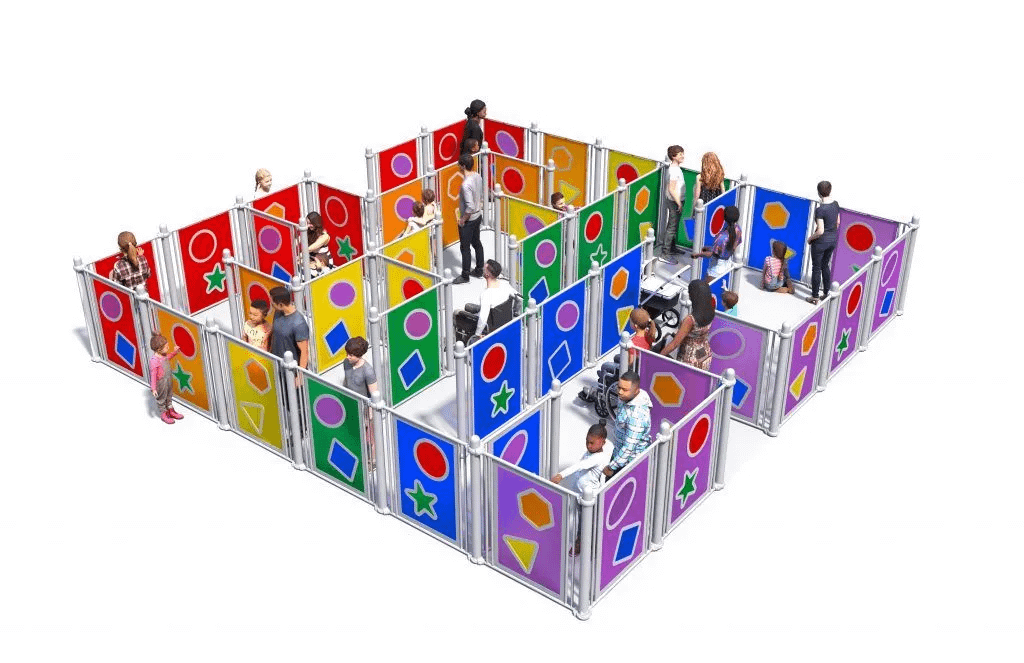 Designed by child development expert Dr. Tina Stanton, this colorful maze invites kids of all ages and abilities to experience each and every corner of its unique structure. Kids will get a thrill out of looking through textured, easily identifiable shapes and trying to figure out the path to get from one end to the other. Quiet spaces are located throughout for anyone overwhelmed by the noise and activity on the rest of the playground.