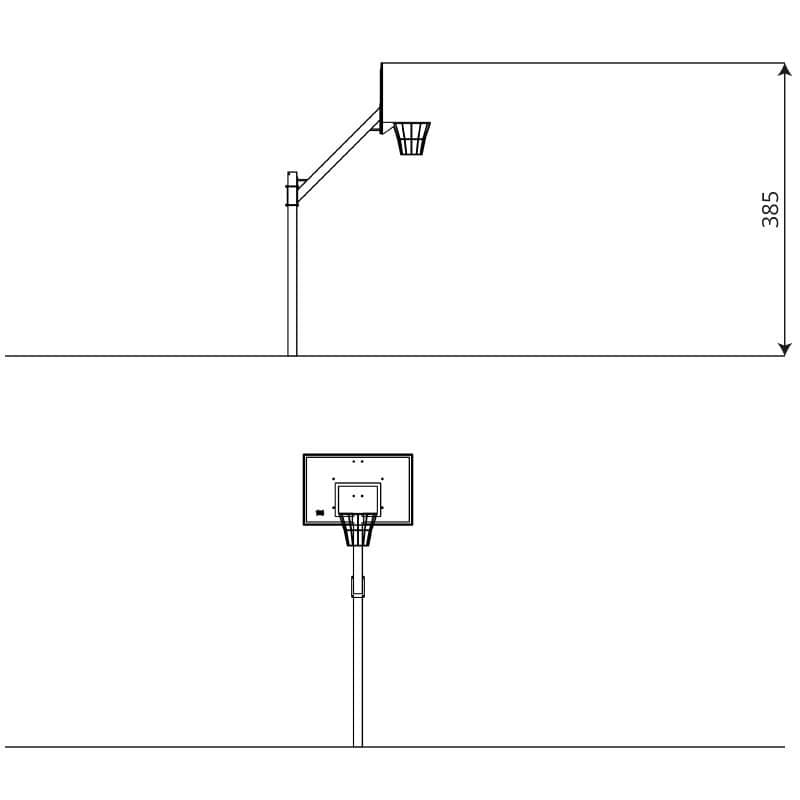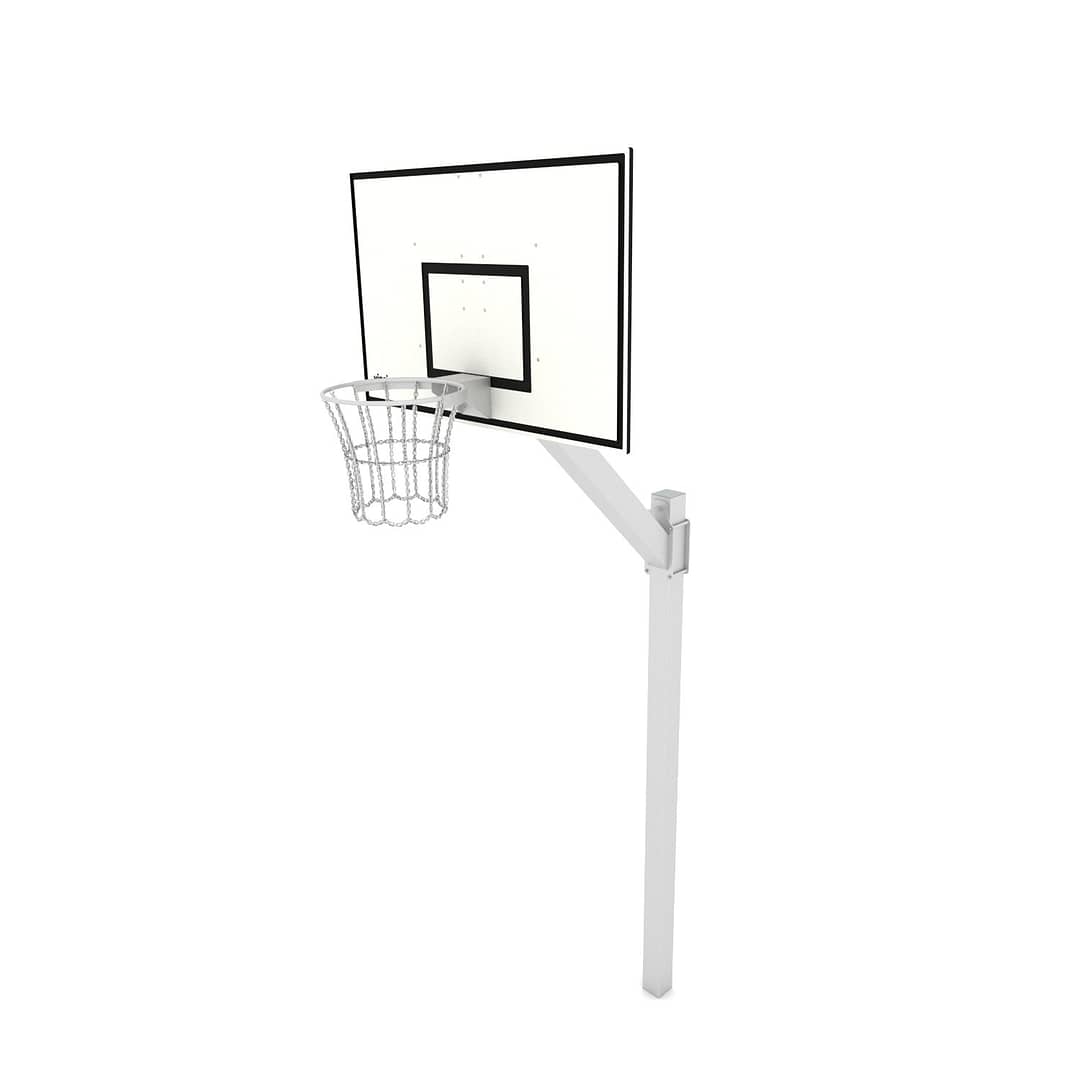 Баскетбольне кільце, професійне, зі стовпами. Може йти без стовпів для кріплення на стіну. Підходить для мультифункціональних полів та спортивних залів.