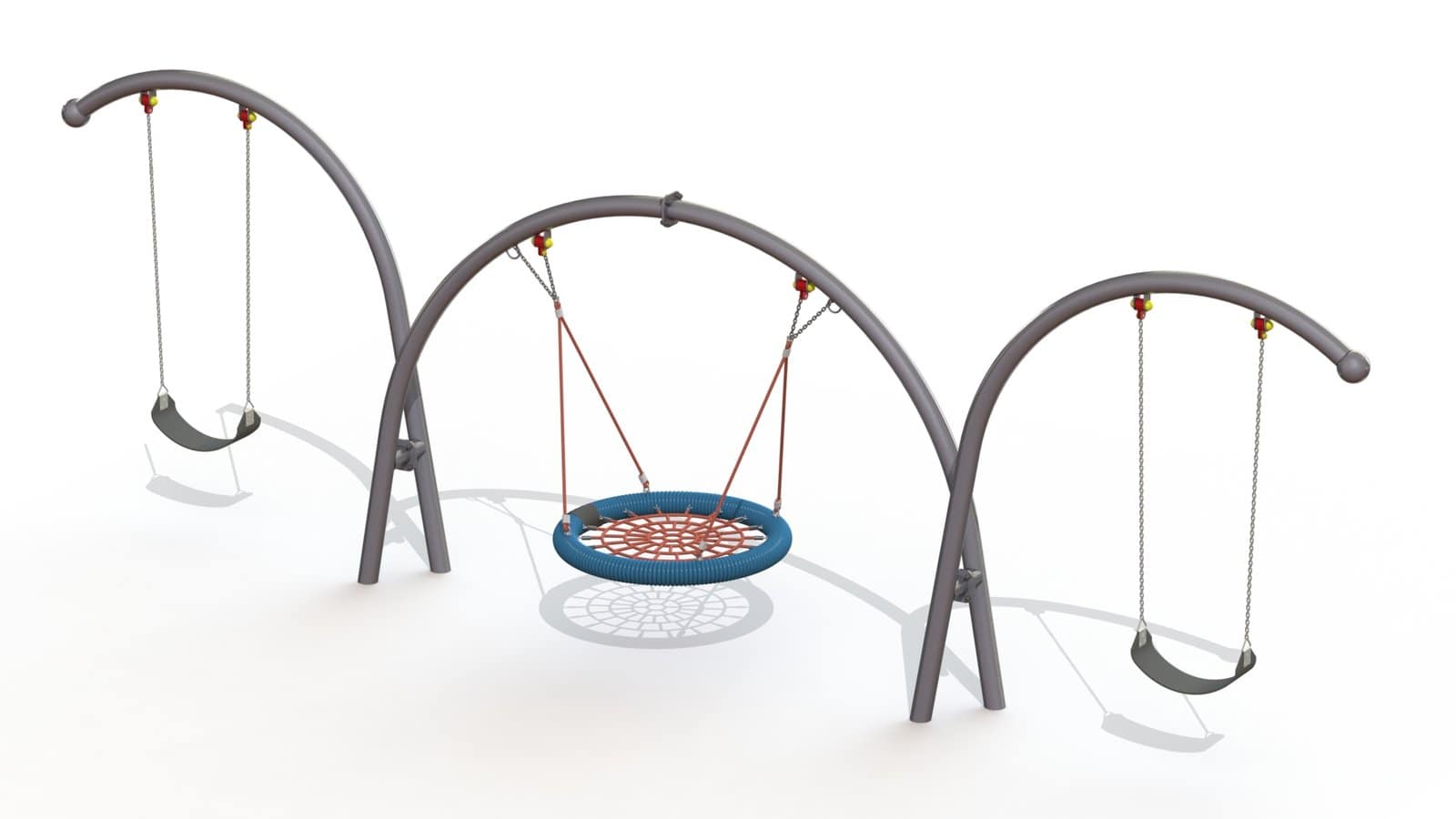 Завдяки своїй цікавій формі гойдалка “Дуга 3Х” зробить Ваш майданчик унікальним та сучасним. Може комплектуватись будь якими сидіннями: для малюків, гніздом та гумовими на ланцюгах. Завдяки різноманітності сидінь підходе на різний вік дітей: сидіня для малюків буде комфортним для діток від 8 місяців, гніздо – для діток від 1 року, а гумові гойдалки на ланцюгах розраховані на дітей більш старшого віку, .