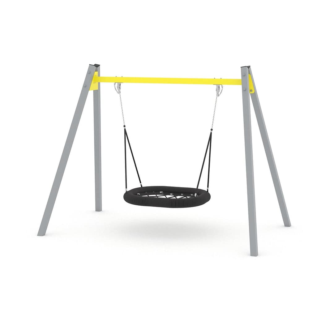 Гойдалка “Гніздо” заохочує одразу купу дітей покачатися разом. На ній можна лежати, насолоджуючись хмаринками, або весело гойдатися разом з друзями. Під час гри розвивається орієнтація в просторі, координація та комунікативні навики.