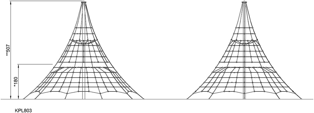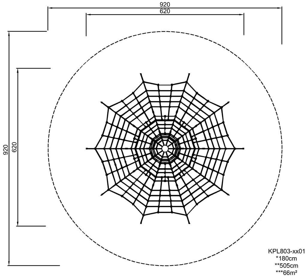Кожен хоче піднятися на вершину канатного комплексу або принаймні до першого рівня павутини. Лазіння по канатам тренує координацію рухів і м’язи, коли діти піднімаються і повзуть до вершини. Крім того, під час підйому на висоту серйозно тренується відчуття простору. Кольорові горизонтальні поверхи є чудовими місцями для перепочинку, які спонукають до спілкування. А коли діти лазять по вертикальним канатам, вони постійно кидають виклик своєму відчуттю простору та стимулюють викид адреналіну. Можуть виконуватись в різних розмірах від 300 до 600 см в діаметрі.
