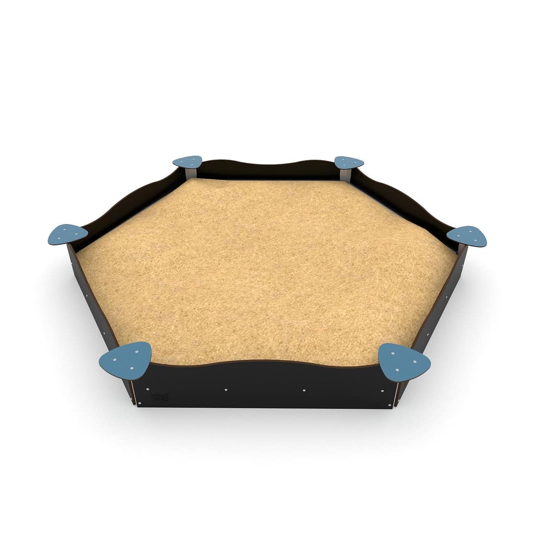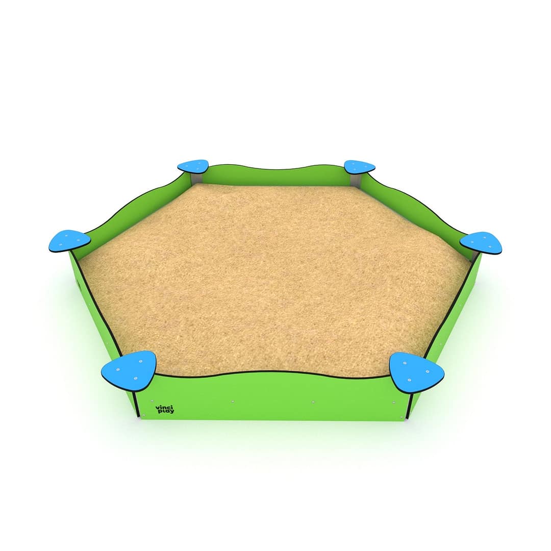 Шестикутна велика пісочниця – це місце творчості та будівництва із піска, де діти розвивають уяву та вчаться комунікувати між собою. Може комплектуватись іншим обладнанням для гри в піску для більш захопливої гри.