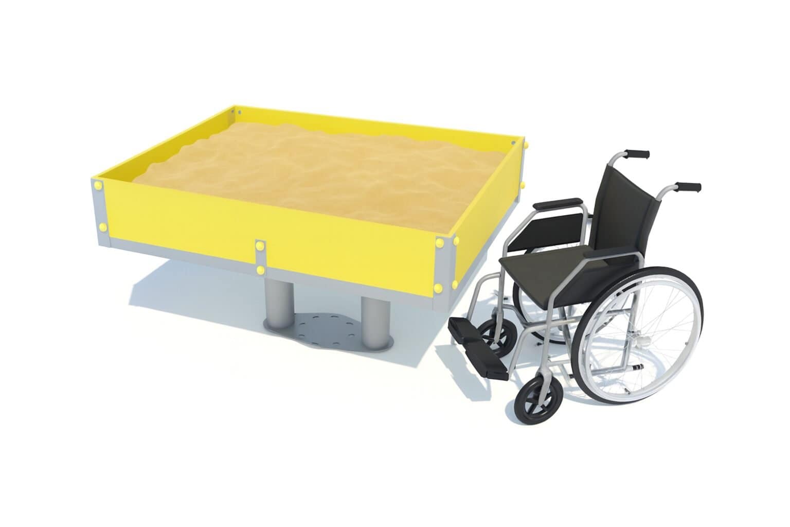 Ця пісочниця є універсальною для дітей з різними потребами. В ній можуть бавитись діти з обмеженими можливостями, бо висота дозволяє комфортно сидіти біля неї у візку. Діти із стандартними можливостями можуть ліпити пасочки, стоячи. Така пісочниця робить гру доступною для всіх та домомагає соціалізації дітей з різними фізичними можливостями.