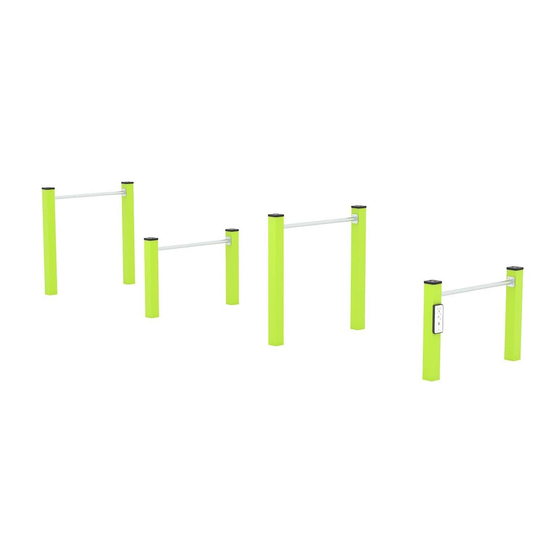 Конструкція включає 4 елемента різної висоти, міцна й стійка до погодних умов та ідеальна для вуличних спортивних майданчиків, парків, ЖК, шкіл та фітнес-зон.