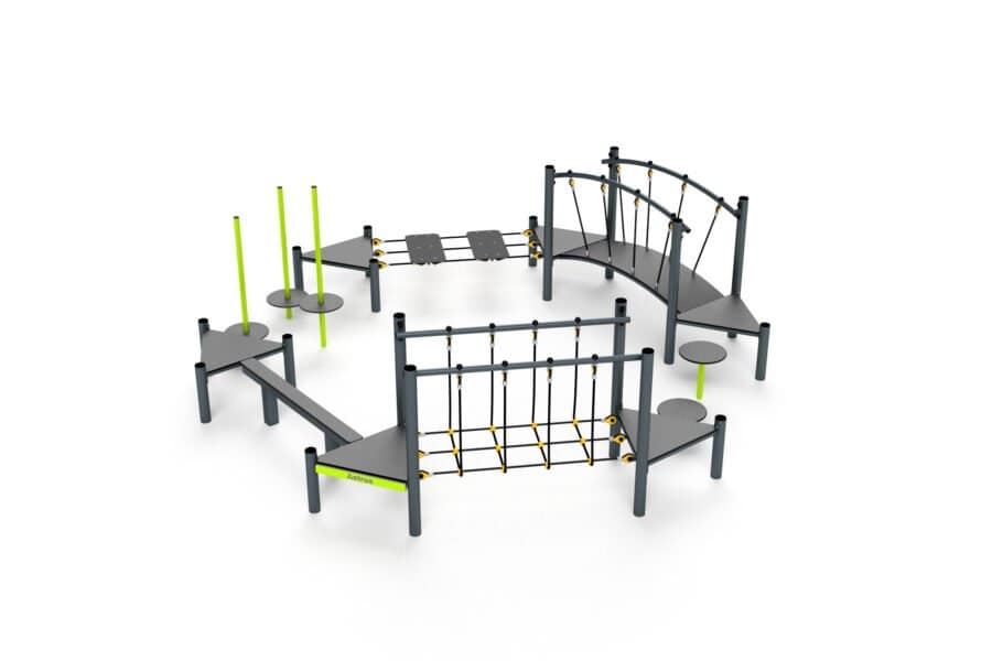Ця смуга перешкод підходить для дітей різного віку. Вона всебічно розвиває відчутя балансу, координацію у просторі та спритність дітей.