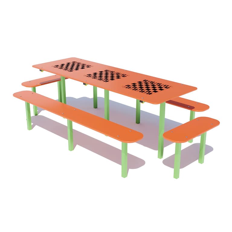 Стіл для гри в шахи — це функціональний та стильний елемент для зони відпочинку чи дитячого майданчика. Конструкція виготовлена з міцного металу, стільниця та сидіння – з HDPL-пластику, що забезпечує довговічність та стійкість до зовнішніх впливів.